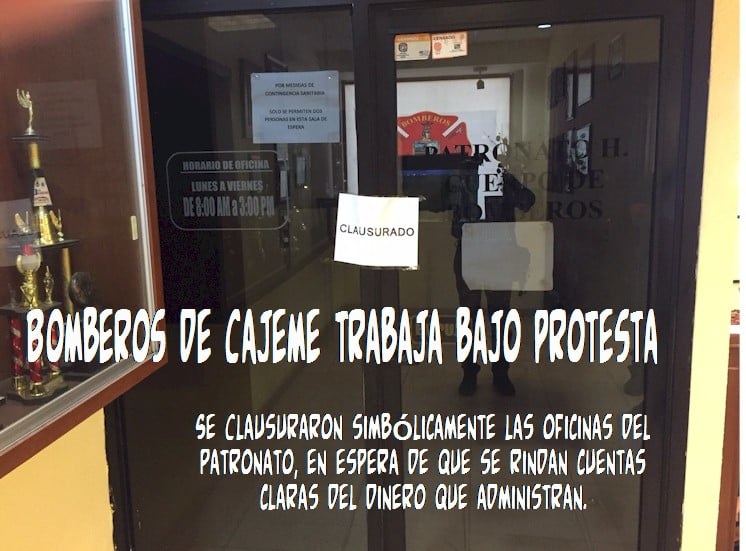 Piden Bomberos cuentas claras al Patronato: no se las dan y cierran de manera simbólica sus oficinas, laboran, pero bajo protesta.