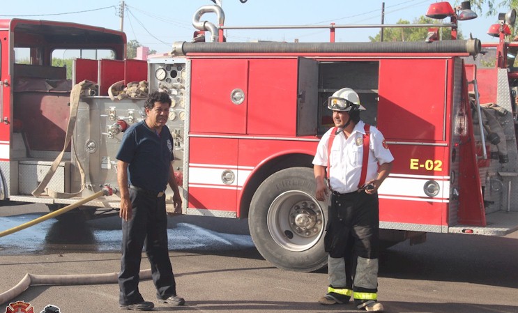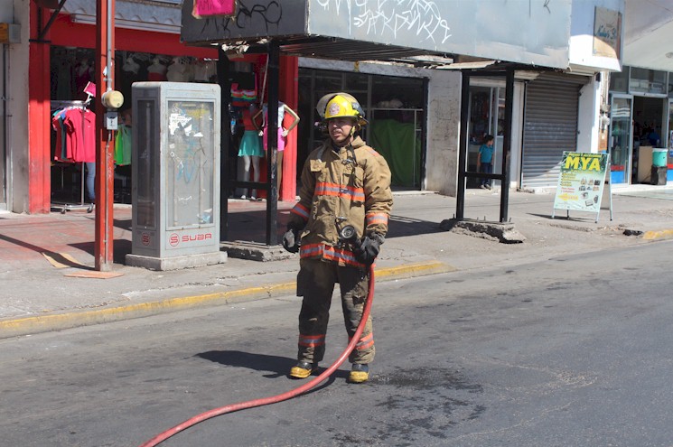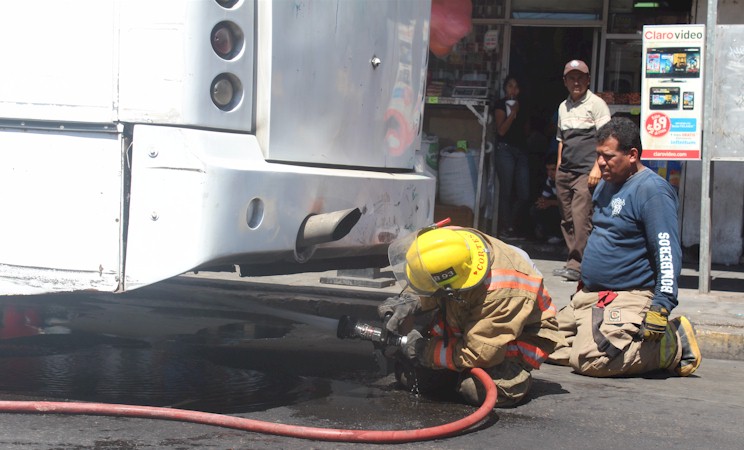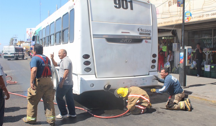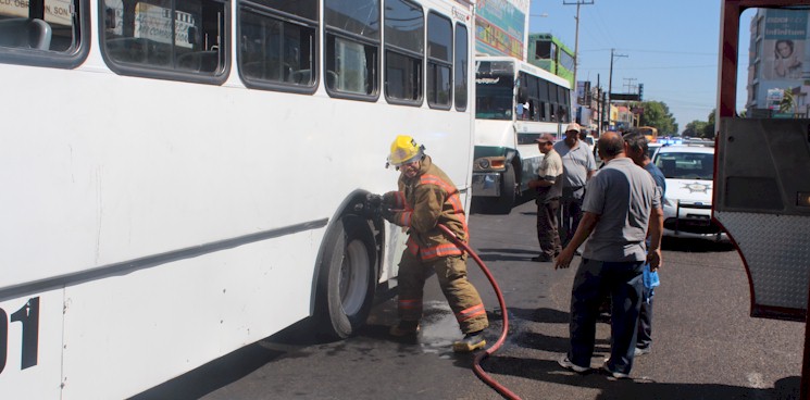 Junio 28, 2014 - En pleno centro de Ciudad Obregón bomberos atienden un reporte de "incendio de autobus". Afortunadamente solo fue calentamiento de las balatas y estas fueron enfriadas sin mayor contratiempo.
