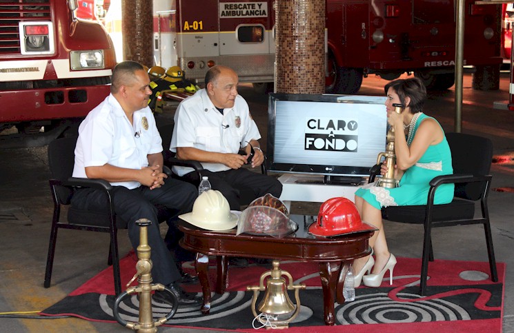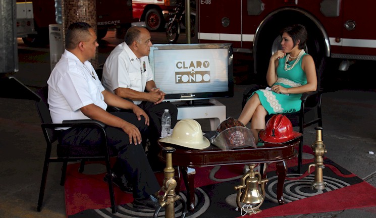 Entrevista de Gabriela Nieblas del Canal 2TV - Televisoras del Pacífico al Comandante Osvaldo Villagrana Amaro Jefe de Bomberos de Cajeme, a Andrés Arche Ayala, Coordinador de Capacitación y al Comandante Hugo López Olivera, Bombero Veterano del Cuerpo de Bomberos de Cajeme