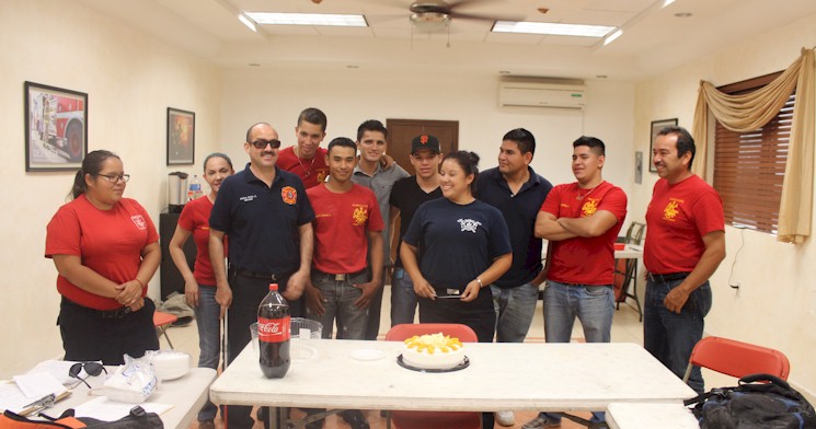 Junio 28, 2014 - Andrés Arche Ayala, Coordinador de Capacitación, Alvaro Fernández K., alumnas y alumnos de la Academia del Departamento de Bomberos de Cajeme (Ciudad Obregón, Sonora MEX) festejan el cumpleaños de la alumna Dulce María Flores